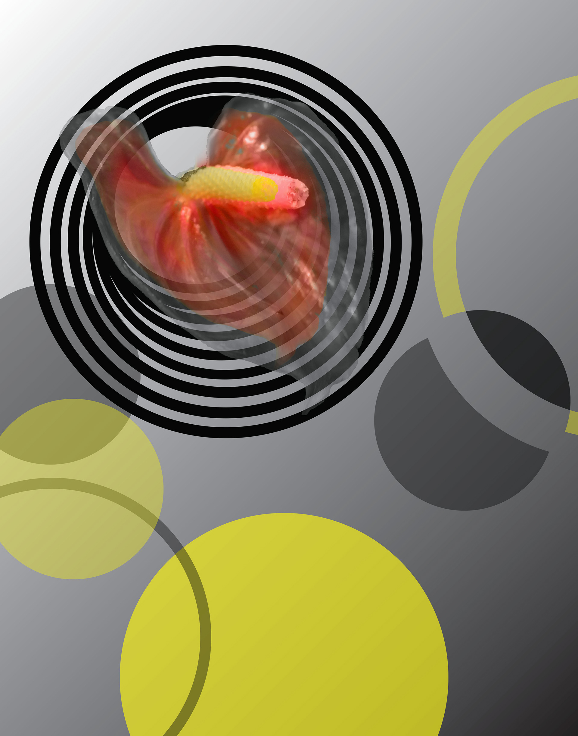 This to me is a balance of feminine qualities, the flowers, and masculine qualities, the shapes. I was aiming for asymmetrical comp and a rhythm between the two. I think it speaks to the relation between a man and a woman.